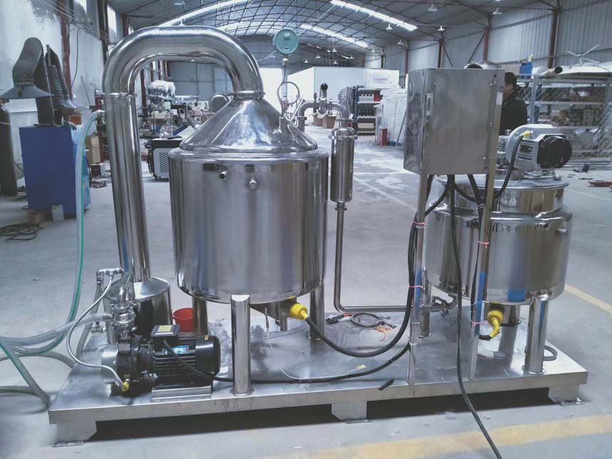 3 、預(yù)熱罐、濃縮罐的夾層內(nèi)加滿水,以防加熱器干燒;夾層出氣口嚴(yán)禁封閉;接好冷凝器的冷卻水管,冷卻水底進(jìn)高出。